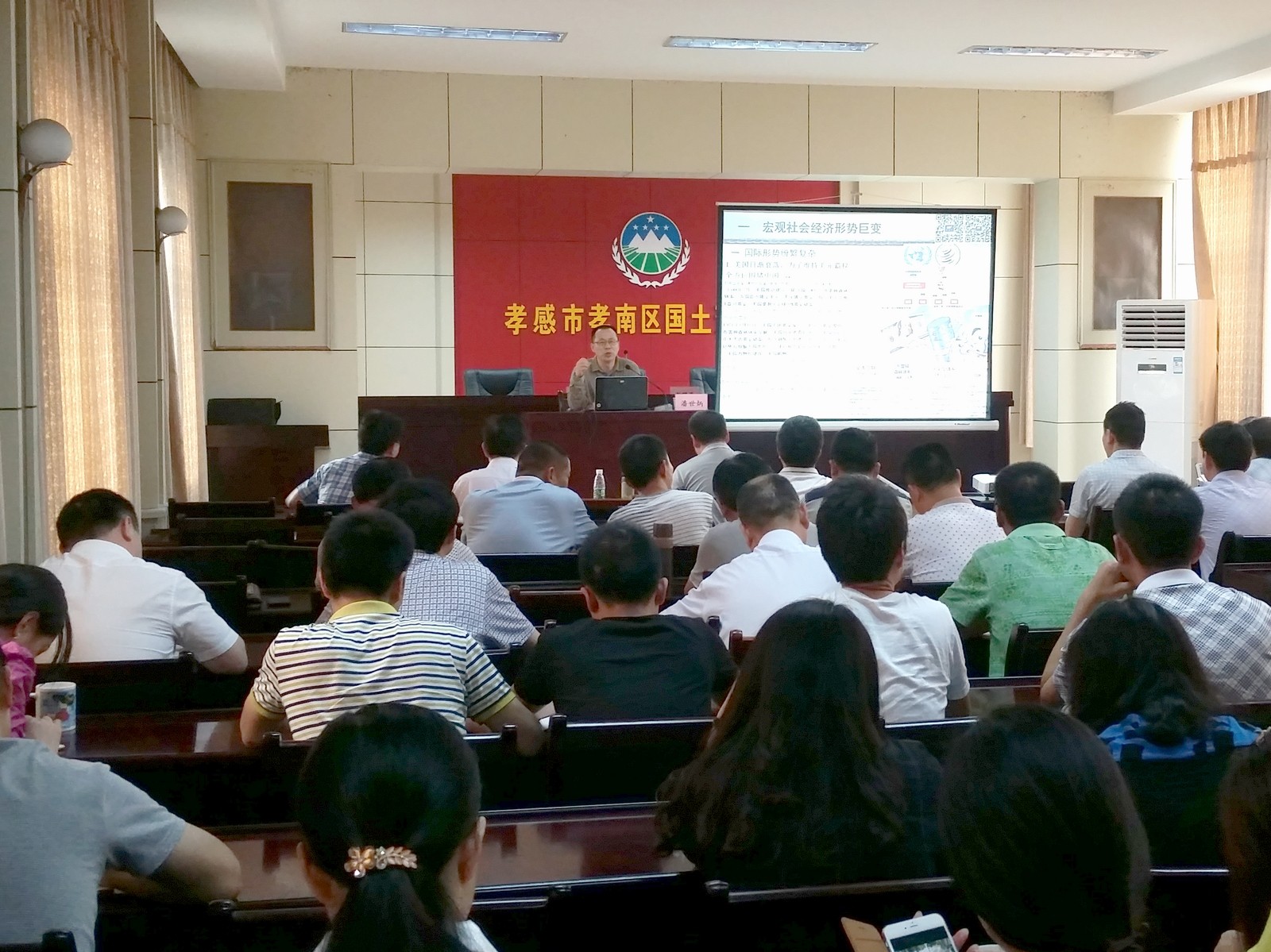 讲座由孝南区国土资源局党组书记、局长孙晓清主持,孝南区国土资源局党组成员、纪检组长候军舟、副局长张亚明、乐志洪、汪泽鹏、总工程师周乐群等领导以及机关全体干部、二级单位负责人及永业行孝感分部负责人近80人参与讲座。
