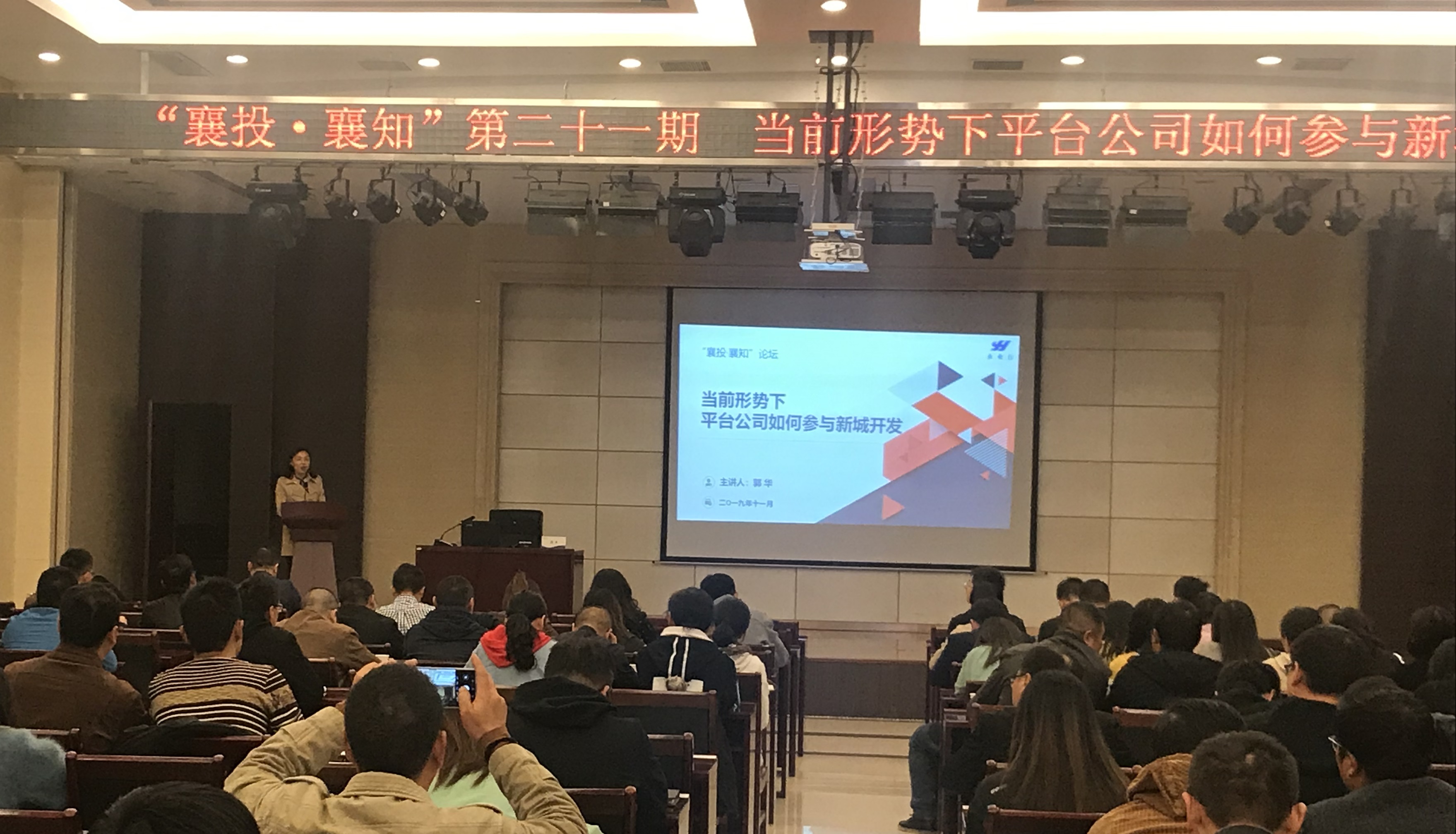 2019年11月4日,永业行不动产事业群技术总监郭华应邀参加了汉江国投集团举办的“襄投.襄知”论坛,作为主讲人围绕“当前形势下平台公司如何参与新城开发”的主题进行现场培训。