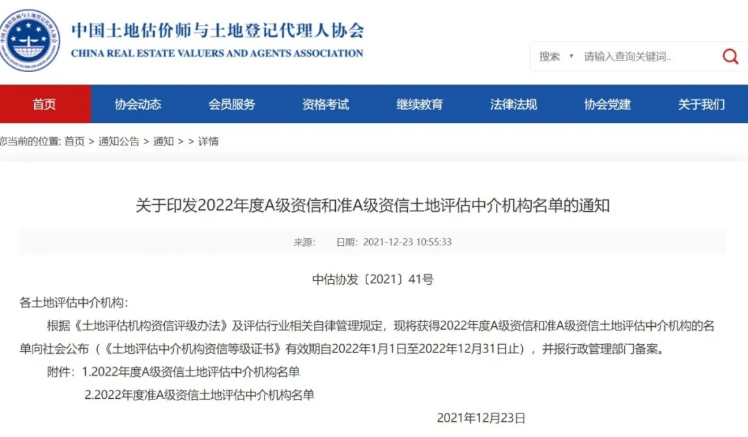 土地评估中介机构A级资信是土地估价行业的最高资信等级,是中估协在全国土地估价行业内针对土地评估中介机构社会公信力、专业服务能力、职业道德操守等开展的综合评价工作,旨在加强行业自律建设、构建行业信用体系、提升行业社会信誉。