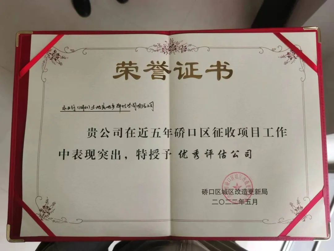 2022年5月14日,武汉市硚口区城区改造更新局举行“硚口区国有土地上房屋征收第三方机构‘比学赶超’工作交流大会”。硚口区区委常委徐岗、副区长邱华威,硚口区城区改造更新局局长王凯等出席会议,并围绕硚口区城市更新现状及未来发展路径、第三方机构项目推进方式等作工作指导。永业行价值评估事业群执行董事刘勋涛、营销中心市场副总监蒋柯受邀参与座谈交流。会议对表现突出的第三方机构进行了表彰,永业行获评为“硚口区征收项目优秀评估公司”。