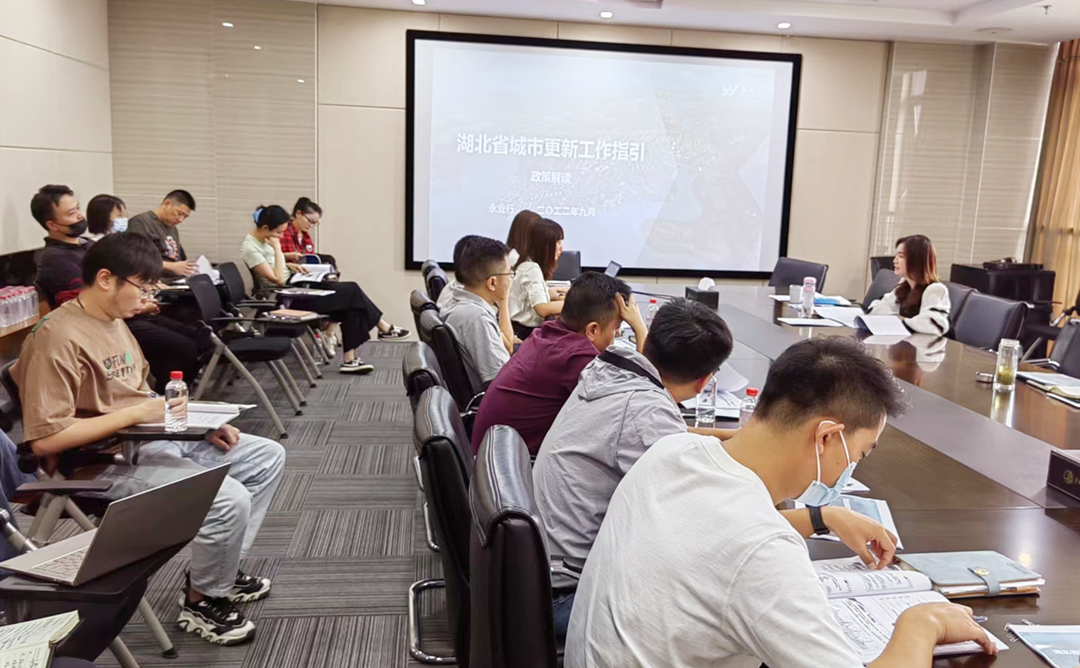 2022年9月22日上午,受武汉立城建设发展有限公司(以下简称“立城公司”)邀请,永业行价值咨询事业部咨询策划技术副总监刘恒慧、价值顾问技术经理徐意萌分别就《湖北省城市更新工作指引(试行)》、2022年第二批“双集中”供地政策及市场研究进行交流分享。立城公司副总经理谢静主持会议,董事长李敏及相关部门员工共30余人参加了此次交流。