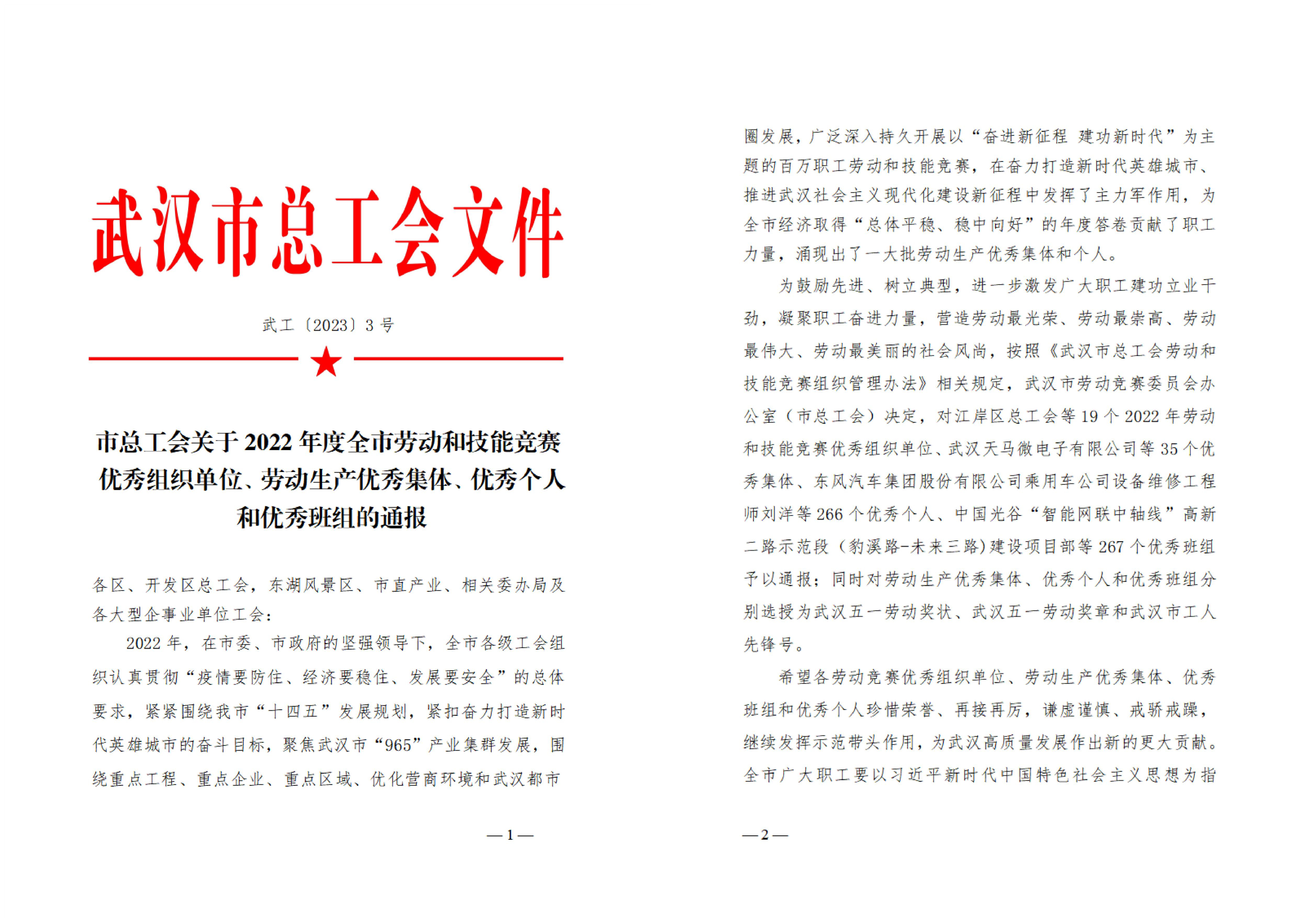 近日,武汉市劳动竞赛委员会办公室、武汉市总工会对全市19个2022年劳动和技能竞赛优秀组织单位、35个优秀集体、266个优秀个人、267个优秀班组予以通报,同时对劳动生产优秀集体、优秀个人和优秀班组分别选授为武汉五一劳动奖状、武汉五一劳动奖章、武汉市工人先锋号。其中,永业行党委书记、董事长潘世炳被授予“武汉五一劳动奖章”。