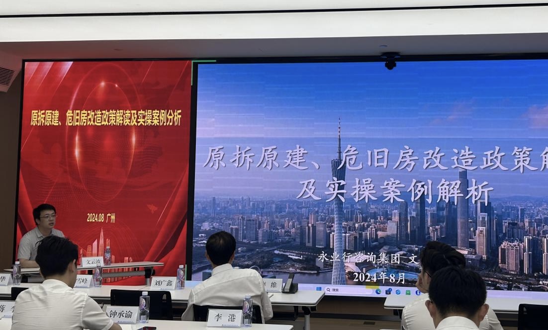 2024年8月12日,中建三局集团华南有限公司组织召开2024年第三期“华南投资课堂”专题培训,中建三局华南公司副总经理李维出席会议。永业行高级副总裁文云波受邀作原拆原建、危旧房改造政策及实操案例解析培训交流。