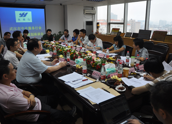 7月8日,武汉市中介服务行业“十二五”规划座谈会在永业行召开。武汉市委统战部徐军处长、武汉市发改委服务业发展处副处长郑道霞及武汉市评估、会计、律师、税务、人力资源、信用、房地产中介等服务行业的17家机构代表参加了会议。