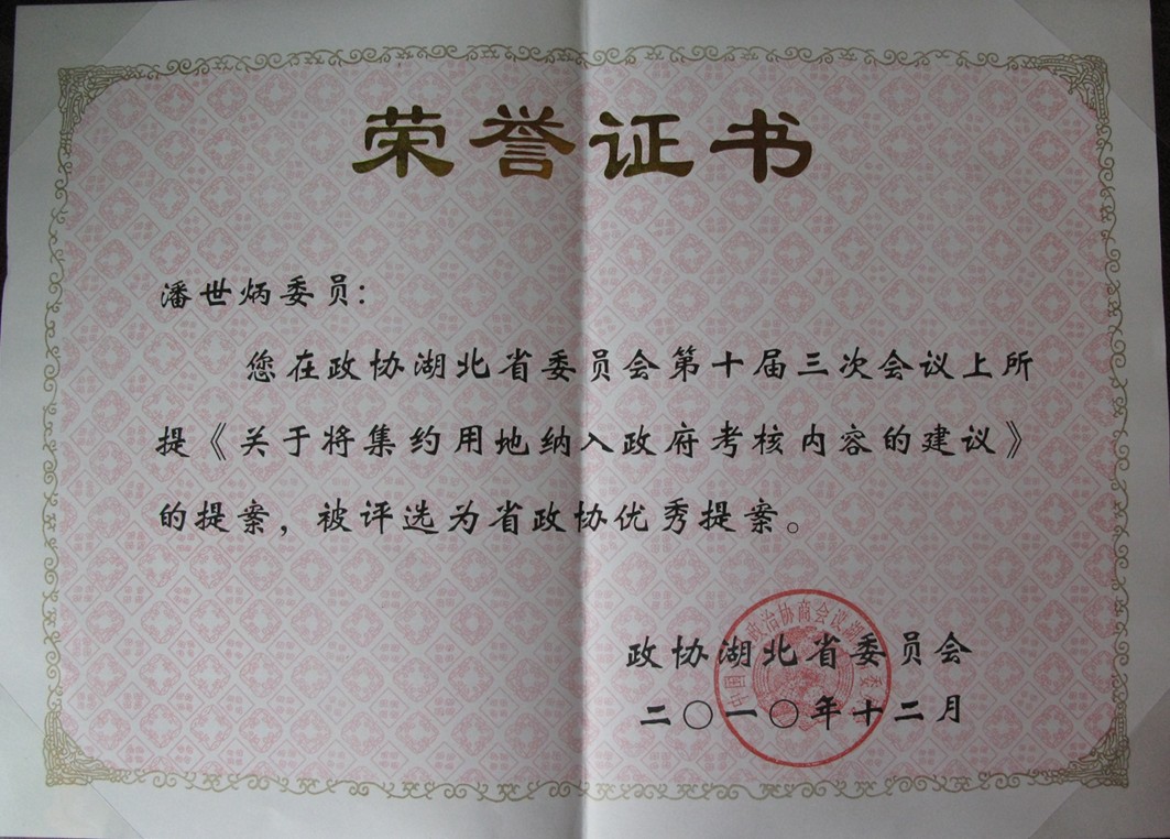 近日,政协湖北省委员会通过关于表彰十届三次会议以来优秀提案的决定,永业行总裁潘世炳的《关于将集约用地纳入政府考核的建议》等61项提案获得优秀提案奖。这61项提案是从723项提案中,通过多种方式评选,并经过主席办公会确定的。
