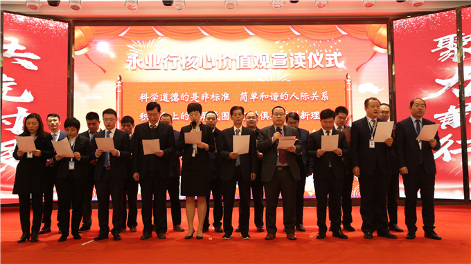 全体与会人员集体宣读永业行核心价值观