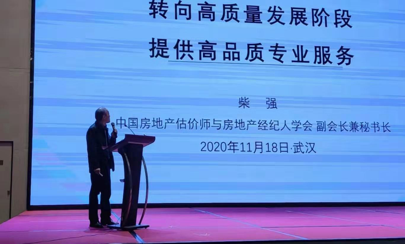 2020年11月18日,由云估价联盟等组织的2020估价创新发展论坛在武汉召开。中国房地产估价师与房地产经纪人学会副会长兼秘书长柴强作《房地产估价行业未来发展方向》的报告,中房学常务理事、湖北省房地产业协会会长、永业行董事长、总裁潘世炳受邀发表《后疫情时代房地产评估行业创新发展》的主题演讲。