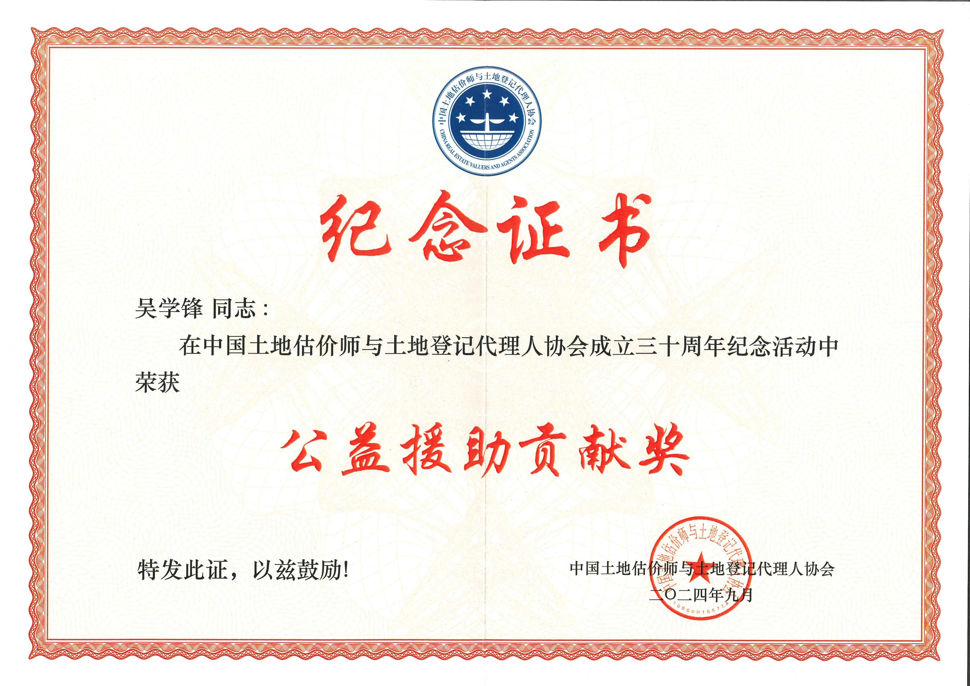 中估协30周年-公益援助贡献奖(吴学锋)