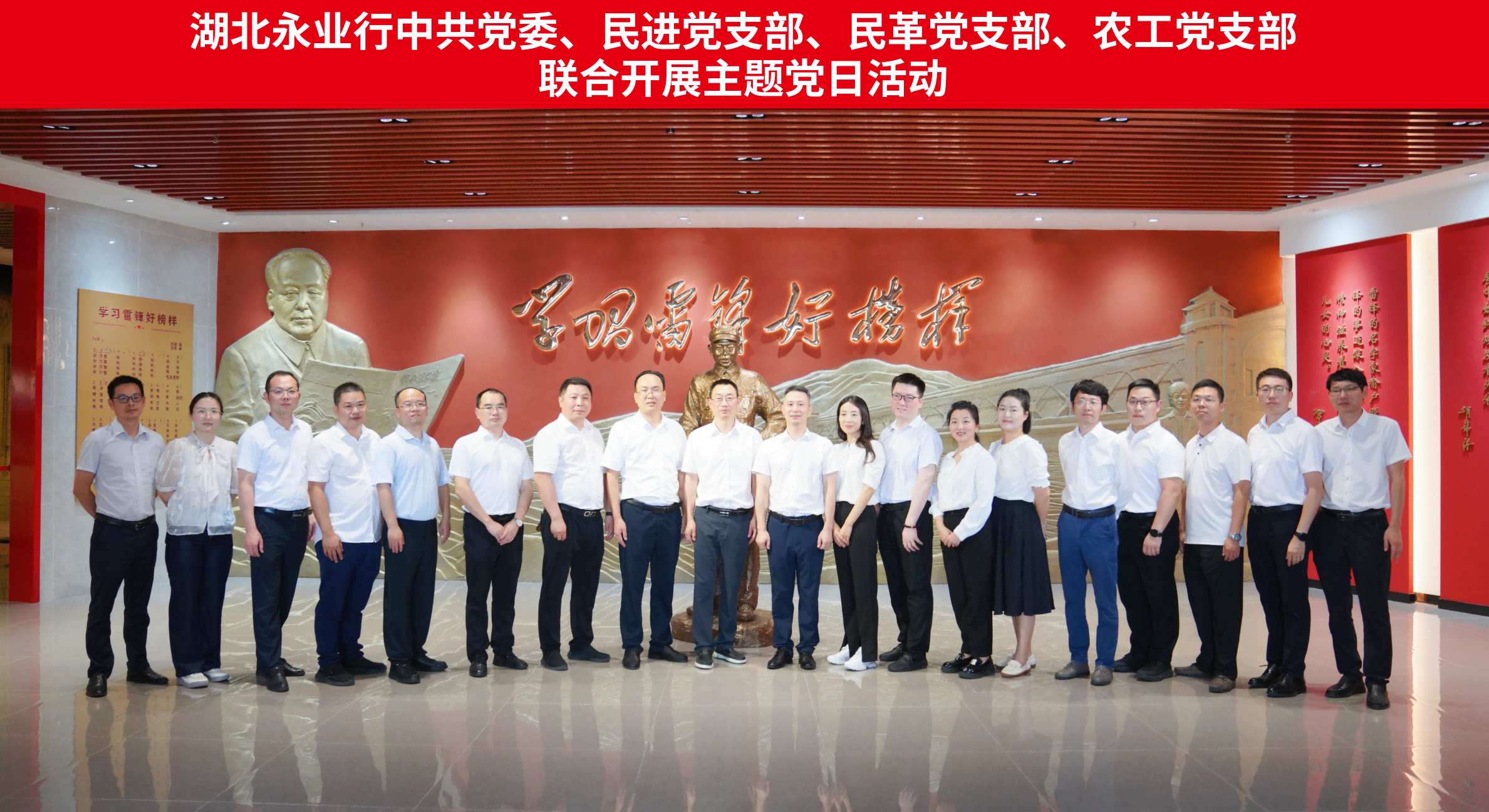 2025年7月12日,中共湖北永业行委员会组织开展“锤炼党性守初心 凝心聚力促发展”主题党日活动,赴咸宁嘉鱼县武汉东湖学院雷锋文史馆参观学习。本次活动特邀民进湖北永业行支部、民革湖北永业行支部、农工党湖北永业行支部等统战人士及中高层管理人员、骨干员工一行60余人参加活动。