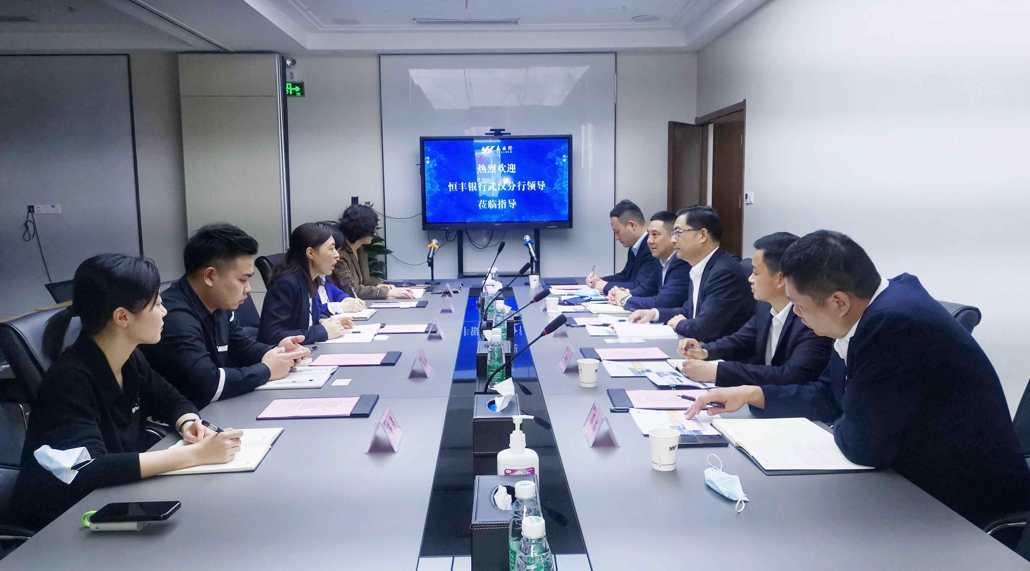 3月16日下午,恒丰银行股份有限公司武汉分行公司⾦融部总经理陈虎平一行莅临永业行考察交流,永业行价值咨询事业部总经理郭华热情接待并组织座谈交流。